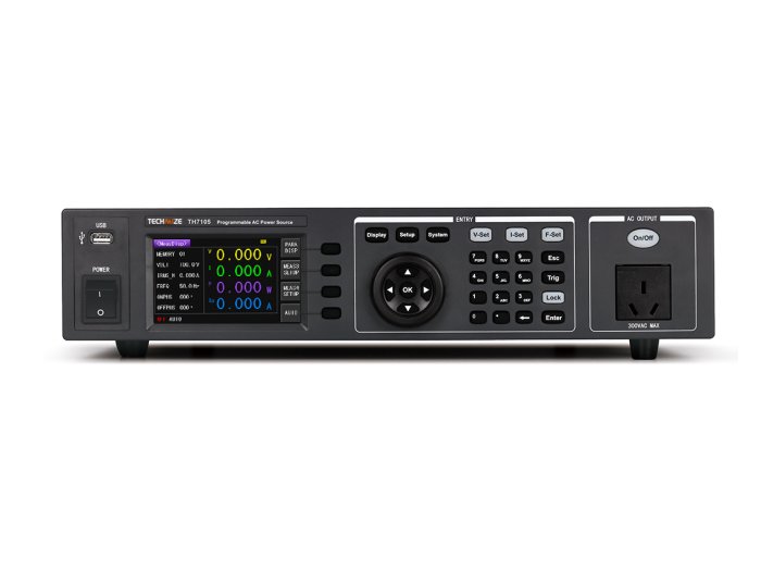 Линейная конструкция усиления, однофазный вход, переменный ток, постоянный ток, выход переменного/постоянного тока: выходная мощность – 1000 ВА; выходное напряжение – 0-300 В; частота настройки – 1 Гц-1 кГц. Поддержка выхода постоянного тока: выходная мощность – 700 Вт; выходное напряжение –1.4-424 В. 24-битный цветной LCD экран размером 4.3 дюйма 480×272. Множественные режимы защиты: HI-A, OVP, LVP, OCP, OPP, OTP. Интерфейс: RS232, USB DEVICE, USB HOST, LAN. Протокол программирования: SCPI, MODBUS. Размеры – 430×177×610 мм, вес – 27.5 кг.