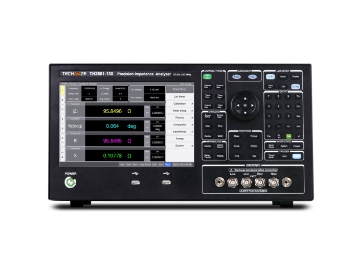 Анализатор импеданса TH2851 компании Techmize имеет пять опций диапазона частот от 10 Гц до 130 МГц позволяют выбрать наиболее подходящую опцию с учётом особенностей решаемых задач. Прибор обеспечивает лучшее в отрасли типовое значение основной погрешности измерений 0,045% в широком диапазоне значений импеданса с использованием встроенного источника смещения по постоянному току до 40 В. Функция анализа эквивалентных схем поддерживает семь различных многопараметрических моделей и позволяет моделировать собственные значения эквивалентных параметров компонентов.