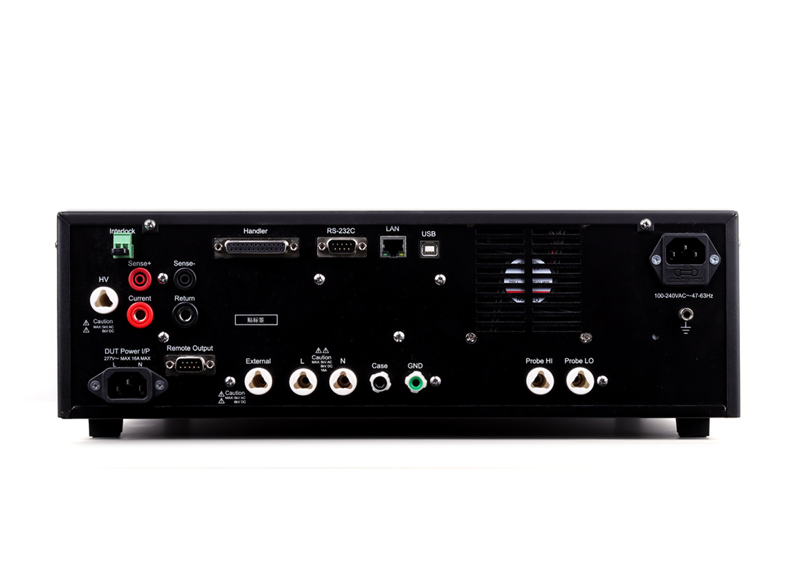 - Комплексная тестовая система «семь в одном» со следующими функциями: 1) Испытание выдерживаемого переменного напряжения; 2) Испытание выдерживаемого постоянного напряжения; 3) Испытание сопротивления изоляции; 4) Тест заземляющего соединения; 5) Проверка непрерывности цепи; 6) Испытание на утечку тока; 7) Испытание электрических характеристик.